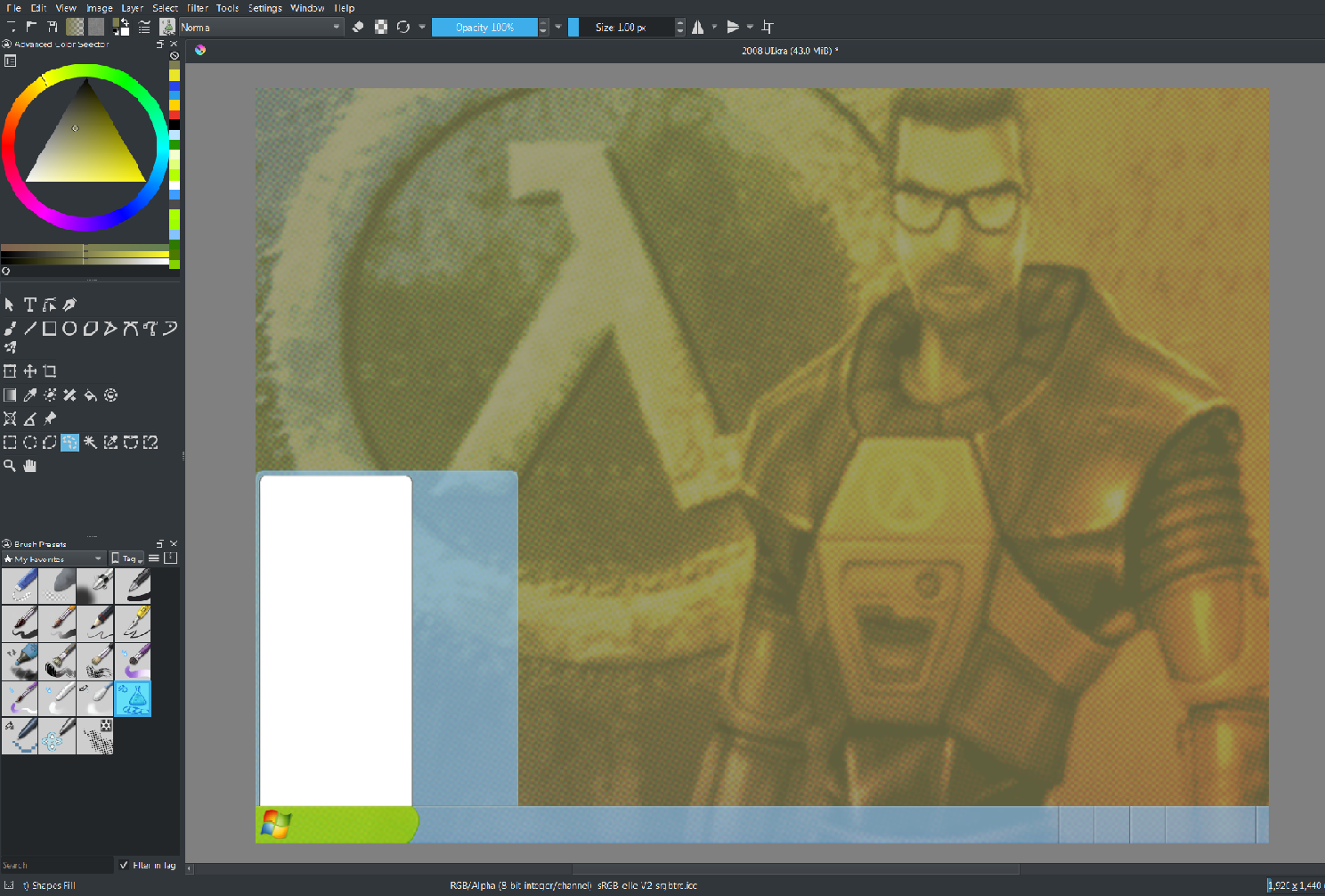 I edited an image of Gordon Freeman to test the transparency of the assets. I can say it's coming off pretty good so far and I didn't even add the glassy effects yet.